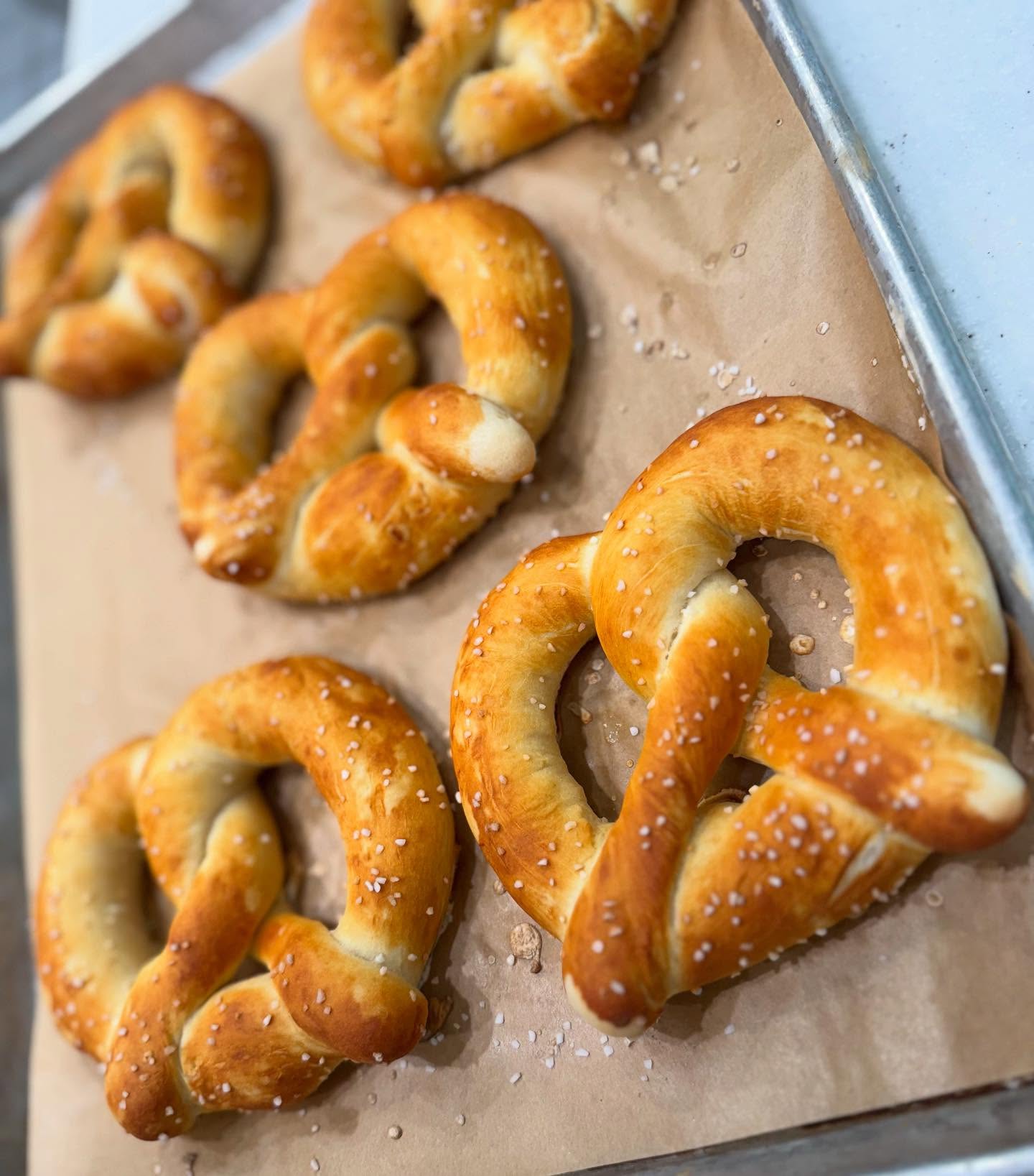 We are the original hand-made, from-scratch pretzel shop in NorthTown Mall. Our pretzels are baked daily with organic flour, twisted by hand, and finished to a golden brown that’s soft, light, and satisfying — served warm and full of flavor without the heaviness.